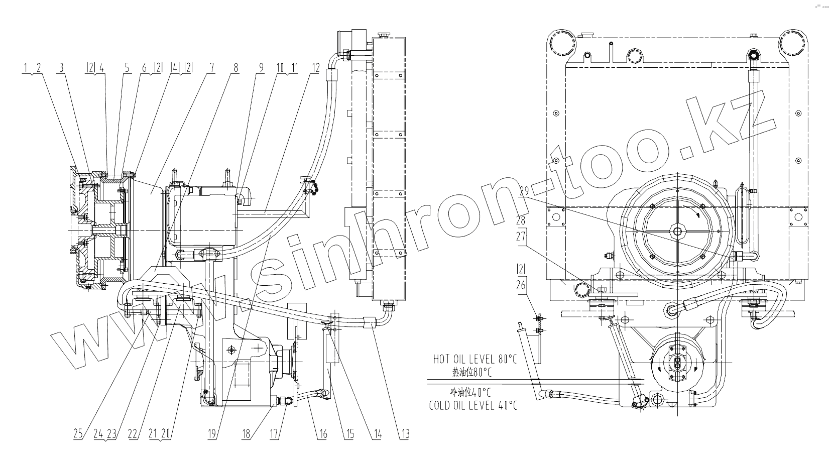 Каталог запасных частей к технике: LiuGong CLG 425. 05Y0125 000 GEARBOX & TORQUE CONVERTER AS