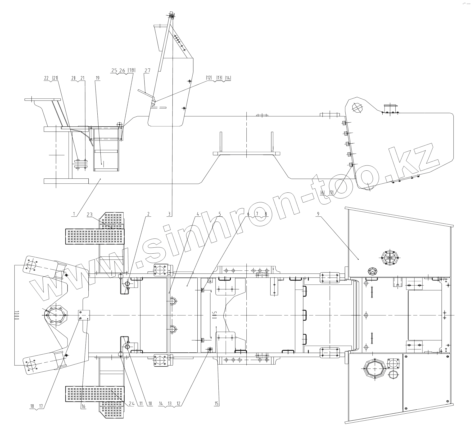 Каталог запасных частей к технике: LiuGong CLG-618. 30E0465 CLG618 Rear Frame Assembly