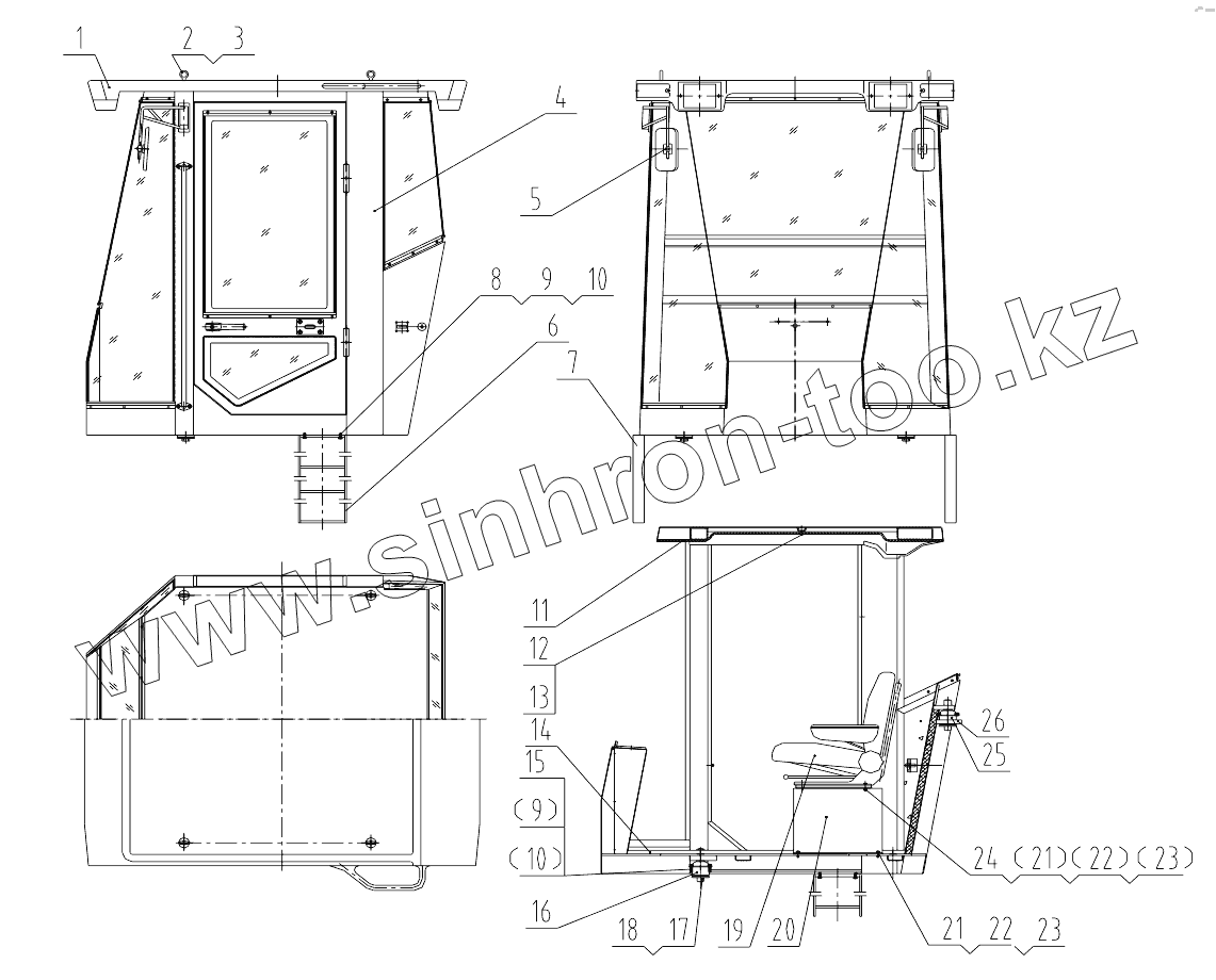 Каталог запасных частей к технике: LiuGong CLG-618. 50Y0010 Cab Assembly