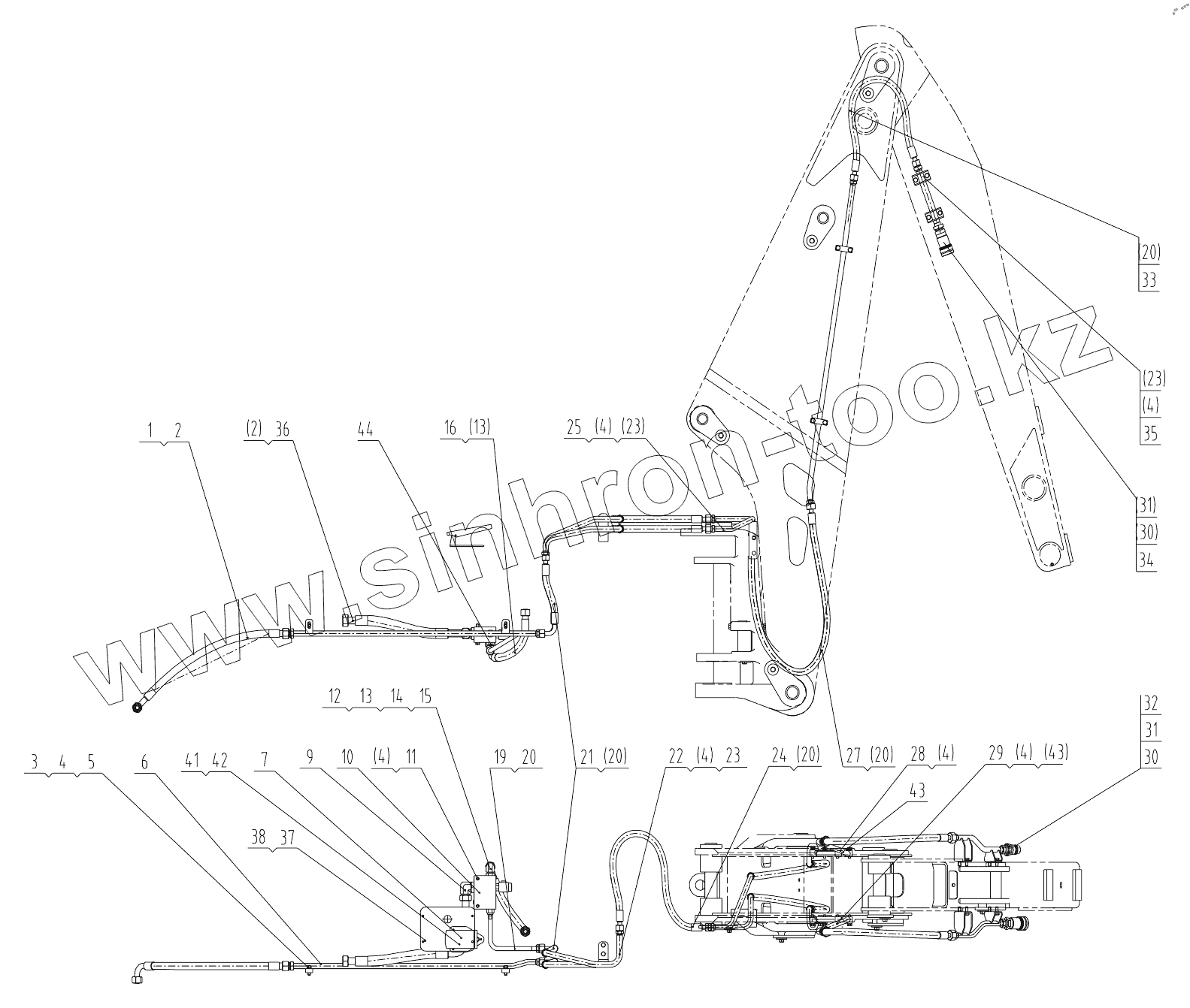 Каталог запасных частей к технике: LiuGong CLG-766A. 15E0823 AUX HYDRAULIC SYSTEM
