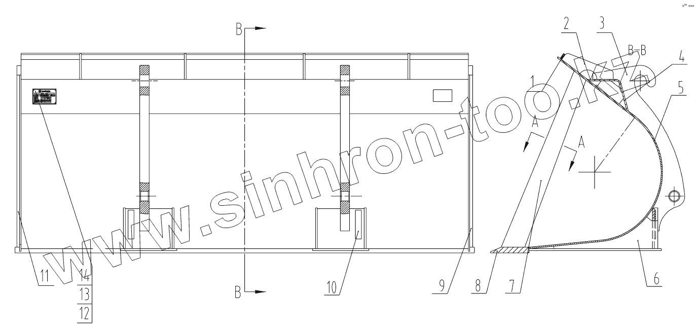 Каталог запасных частей к технике: LiuGong CLG-816G. 22D0556 002 BUCKET