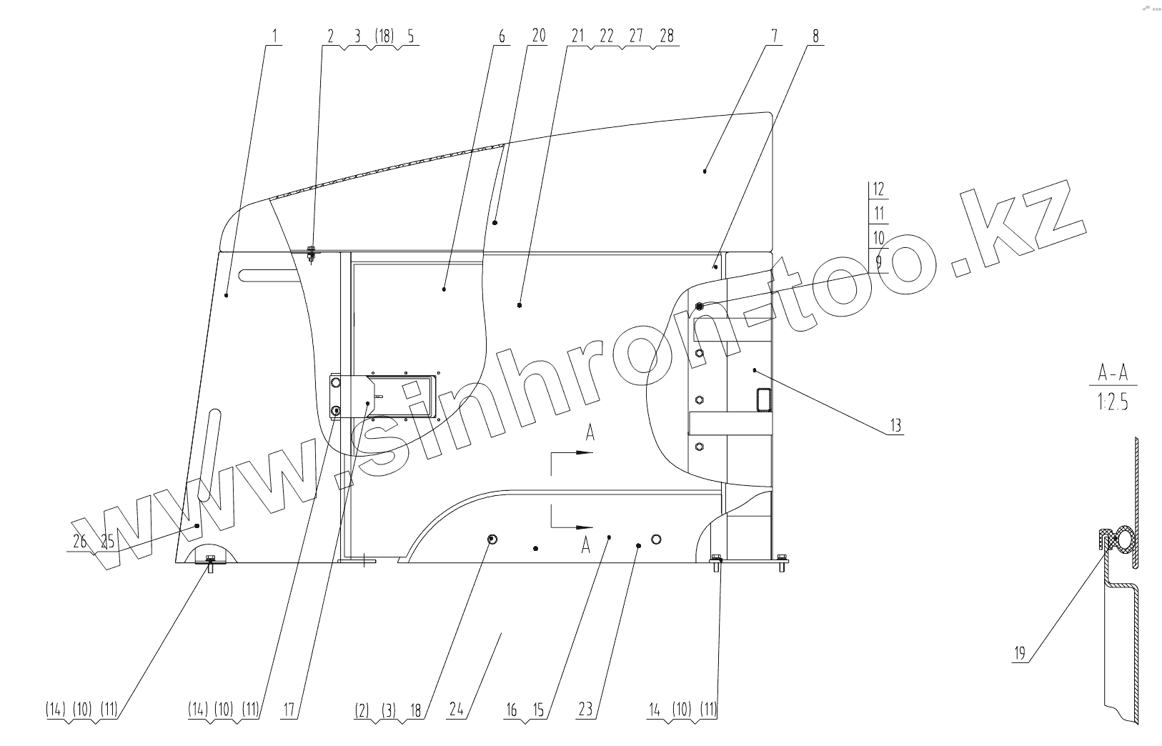 Каталог запасных частей к технике: LiuGong CLG-816G. 48C0656 001 ENGINE HOOD AS