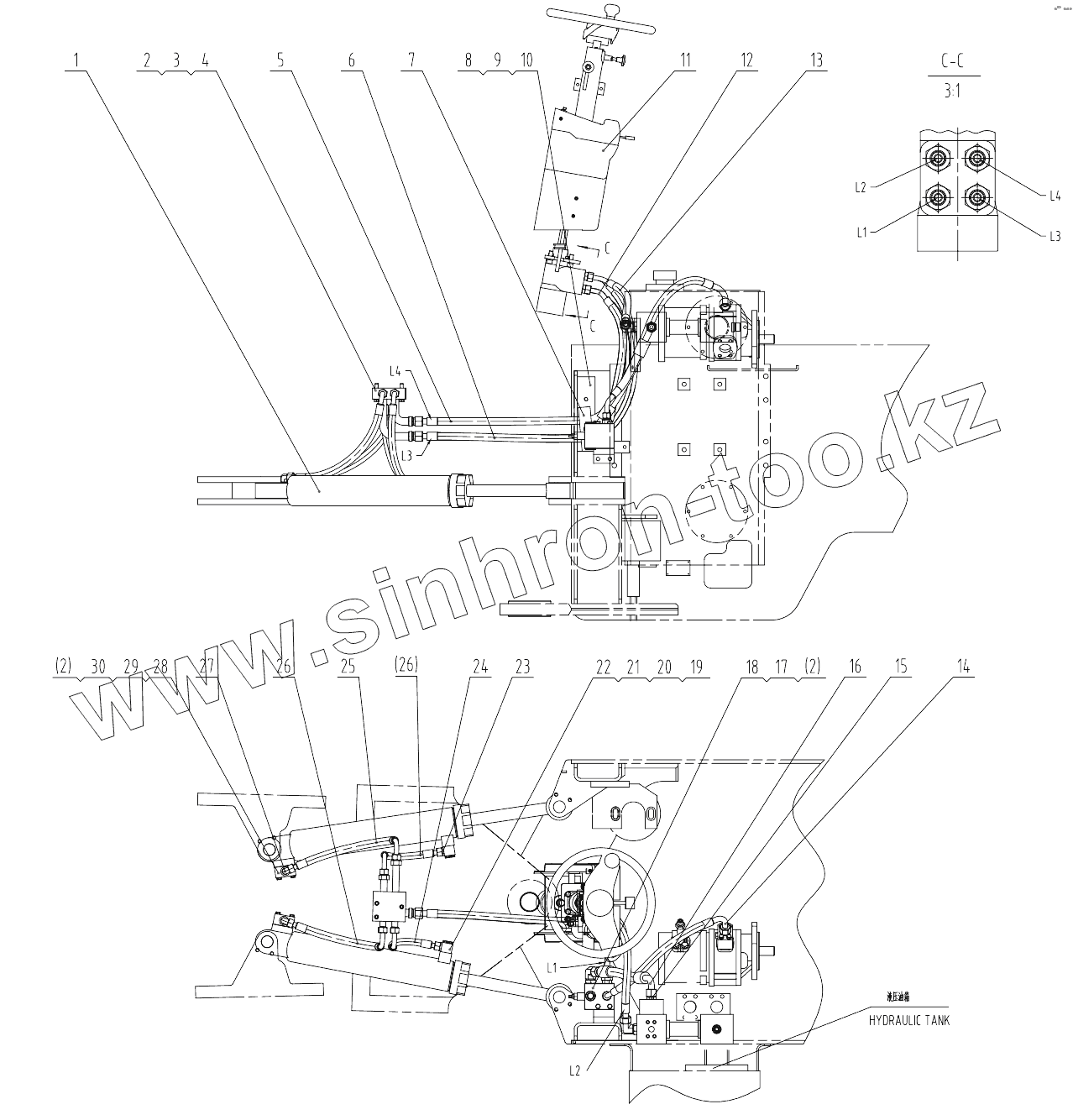 Каталог запасных частей к технике: LiuGong CLG-835. 00C2214 000 STEERING LINES