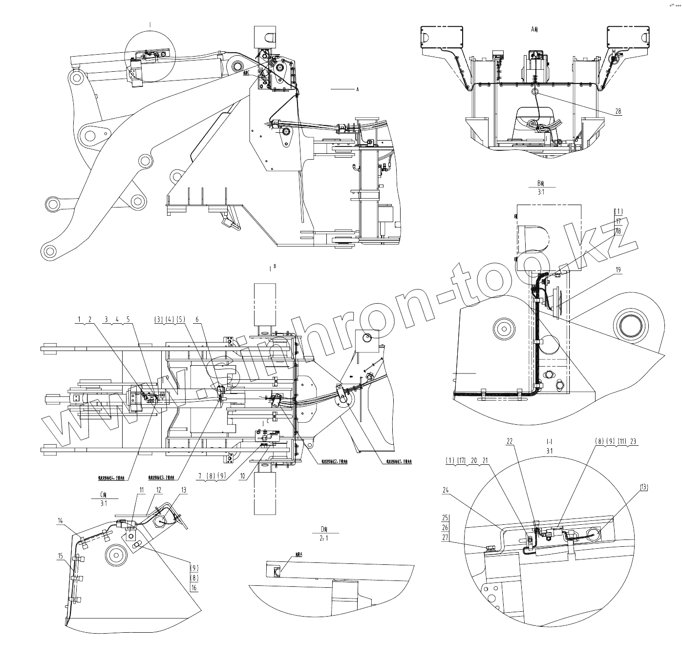 Каталог запасных частей к технике: LiuGong CLG-835. 46C4395 001 FRONT FRAME WIRING