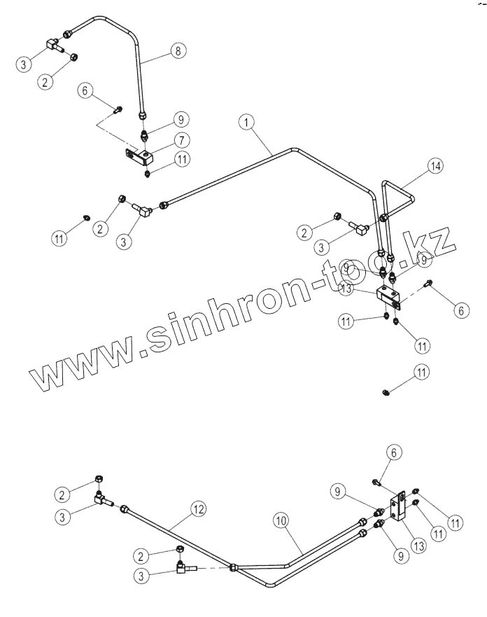 Каталог запасных частей к технике: LiuGong CLG-835H. 00C4837_001_00 FRONT FRAME LUBE LINES