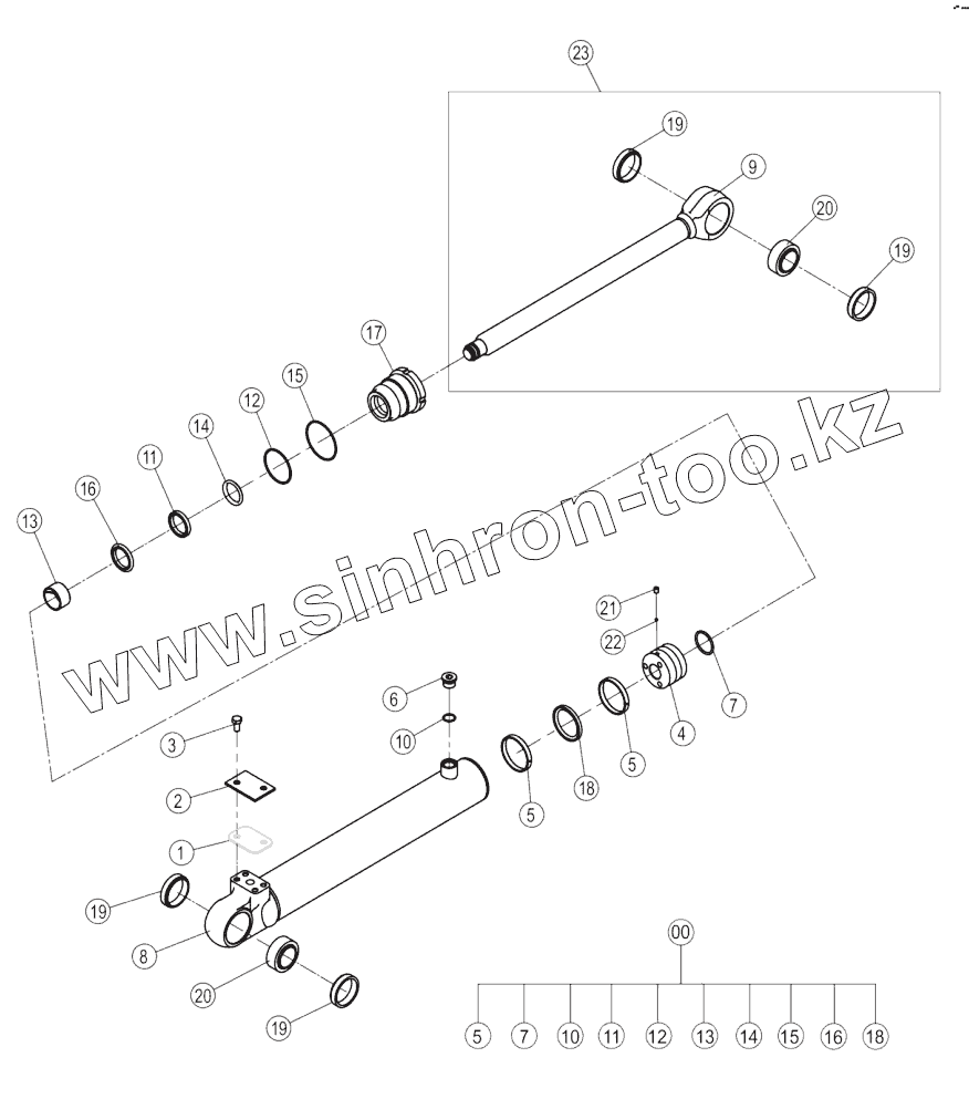 Каталог запасных частей к технике: LiuGong CLG-835H. 10C4197_000_00 STEERING CYLINDER