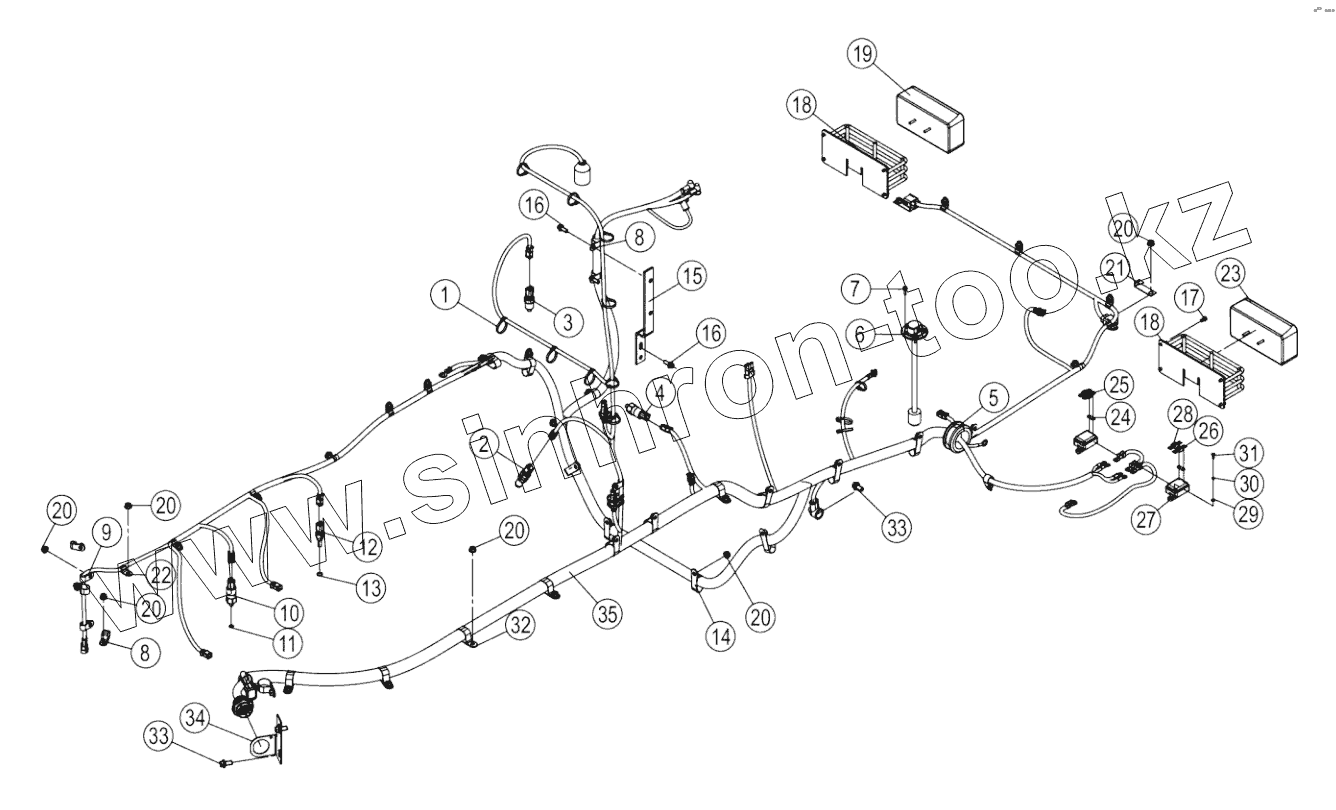 Каталог запасных частей к технике: LiuGong CLG-835H. 49C5543_000_00 REAR FRAME WIRING