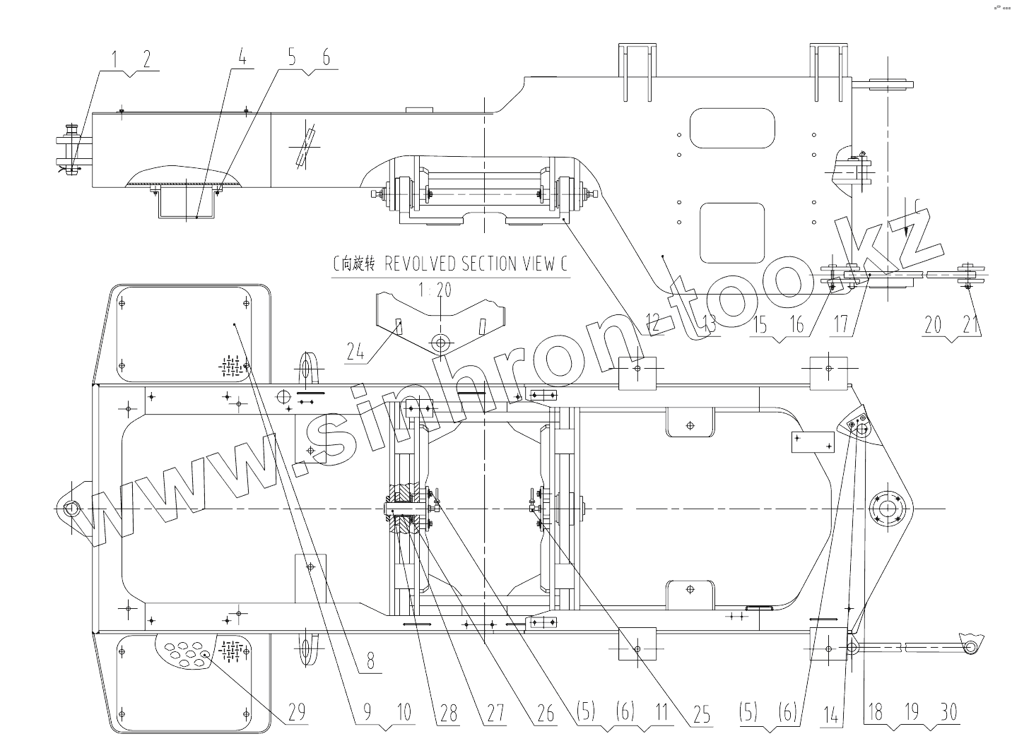 Каталог запасных частей к технике: LiuGong CLG-836. 30E0320 004 REAR FRAME AS