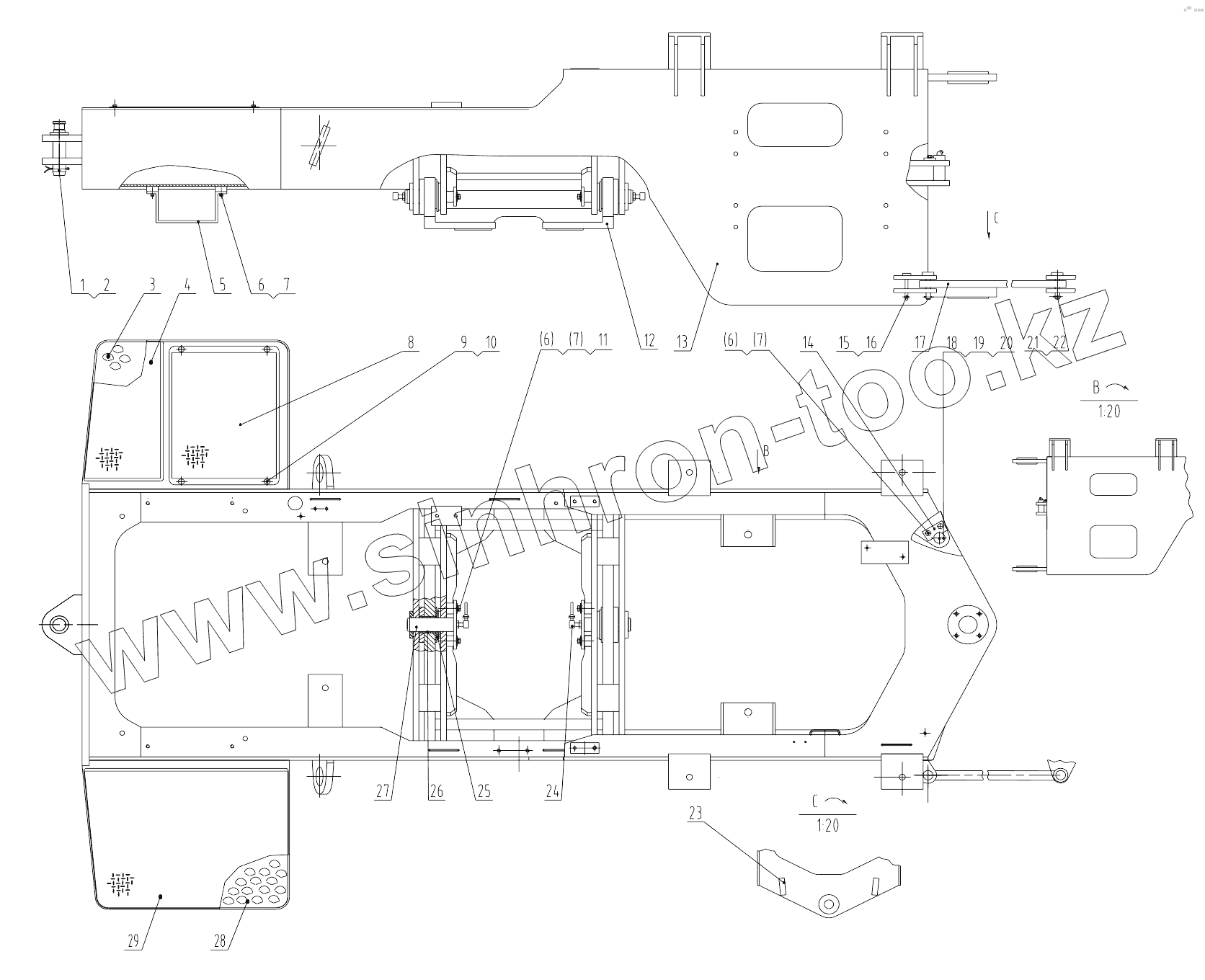 Каталог запасных частей к технике: LiuGong CLG-836. 30E1014 000 REAR FRAME AS