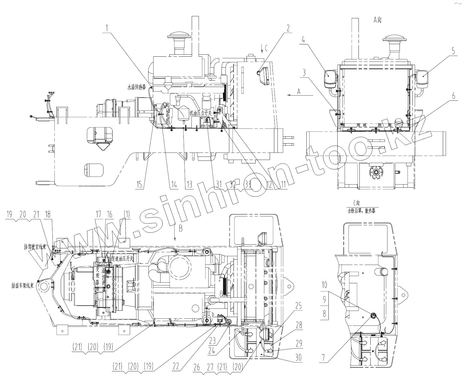 Каталог запасных частей к технике: LiuGong CLG-836. 46K0017 005 REAR FRAME WIRING