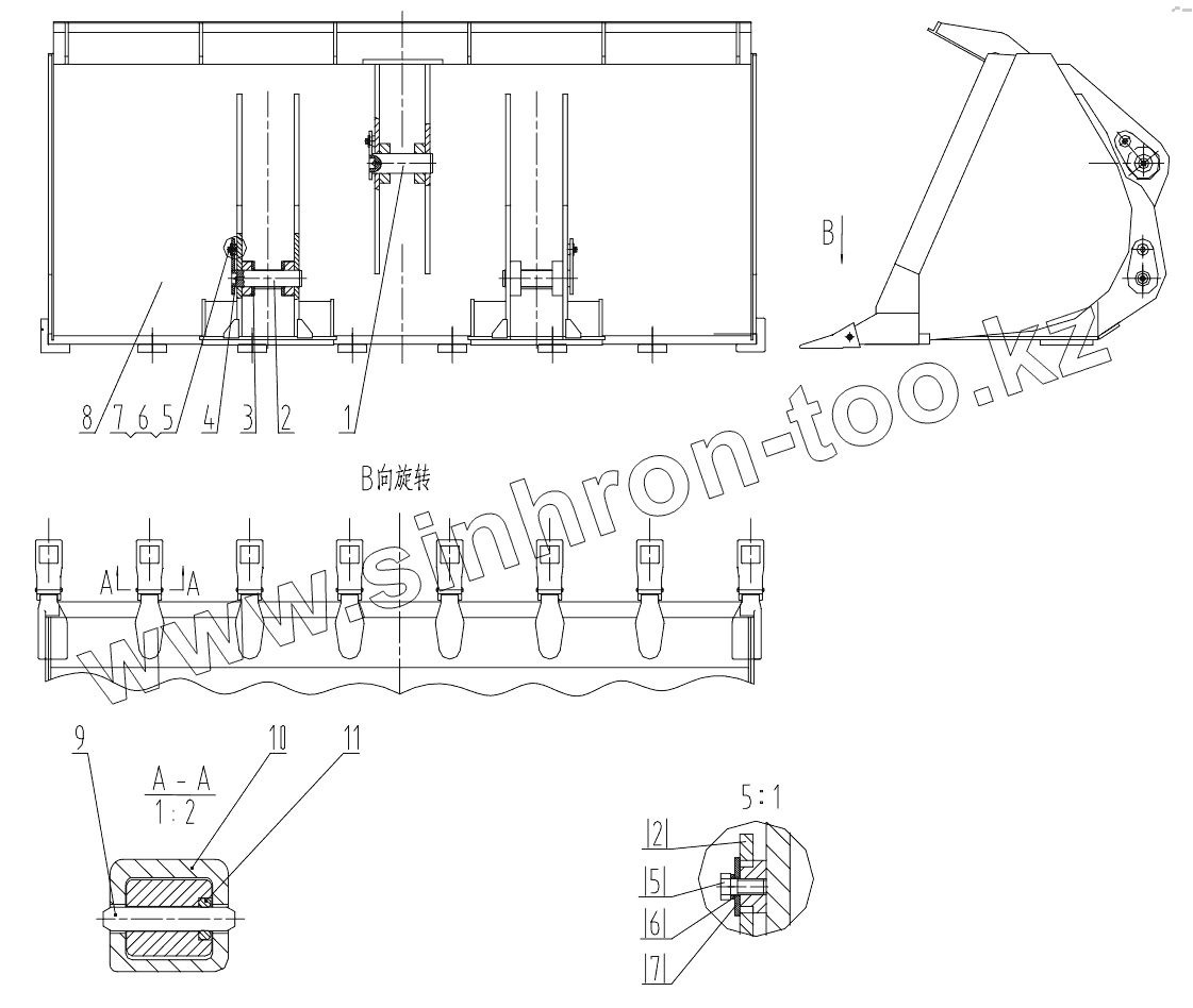Каталог запасных частей к технике: LiuGong CLG-842. 32E0399 000 BUCKET AS (2.3m3)