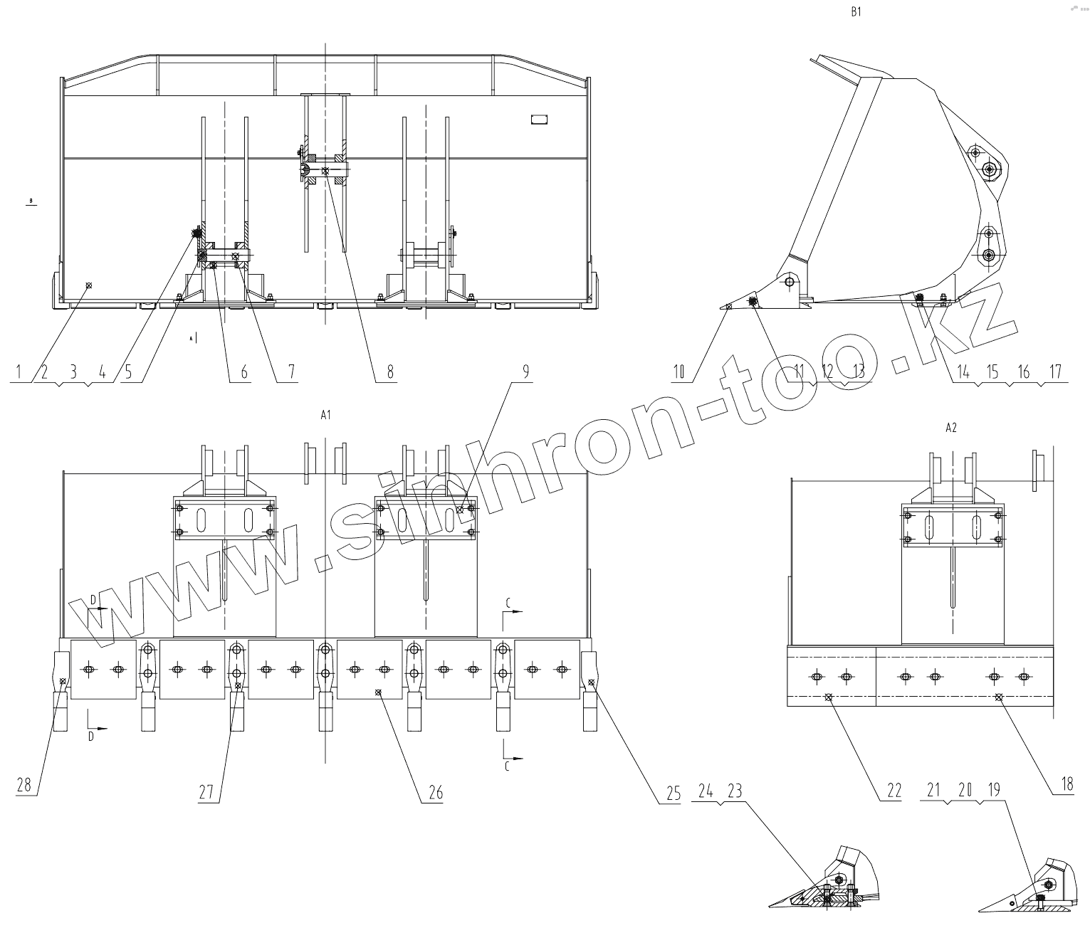 Каталог запасных частей к технике: LiuGong CLG-842. 32E0508 000 BUCKET AS (2.7m3)