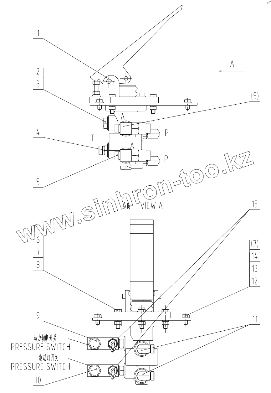 Каталог запасных частей к технике: LiuGong CLG-842. 45C0386 000 BRAKE VALVE AS