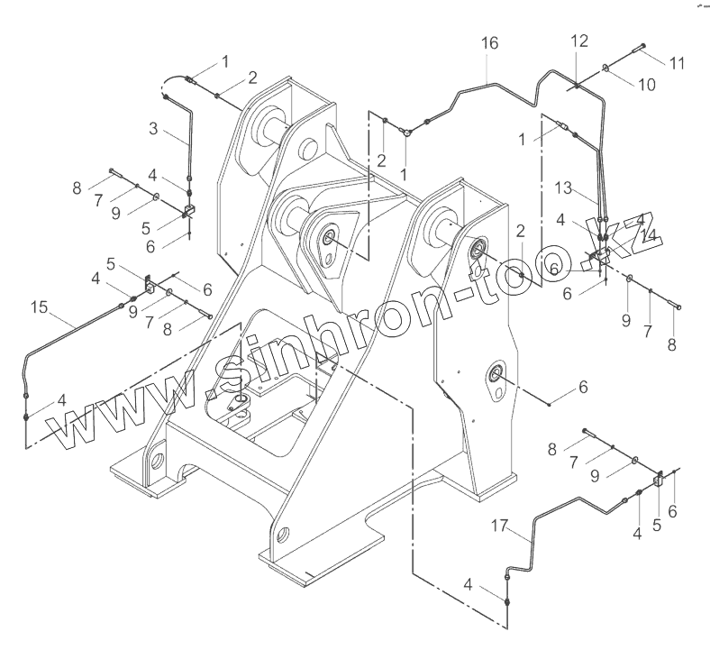 Каталог запасных частей к технике: LiuGong CLG-855N. 00C1916_001_00 LUBRICATION PIPE