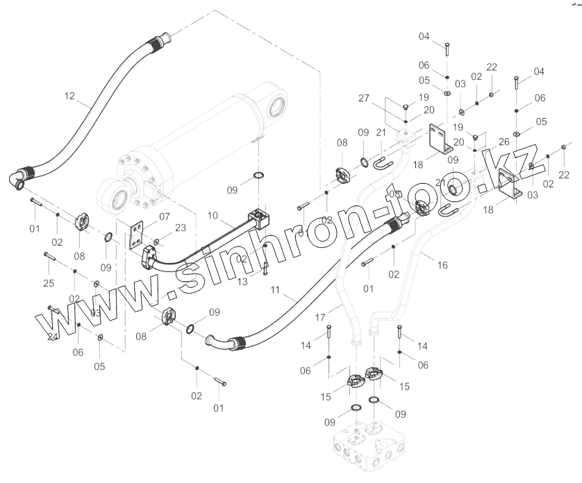 Каталог запасных частей к технике: LiuGong CLG-855N. 00C1921_001_00 TILTING CYLINDER LINES