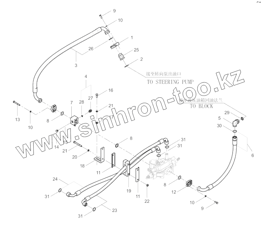Каталог запасных частей к технике: LiuGong CLG-855N. 00C1933_004_00 FLOW AMPLIFYING VALVE LINES