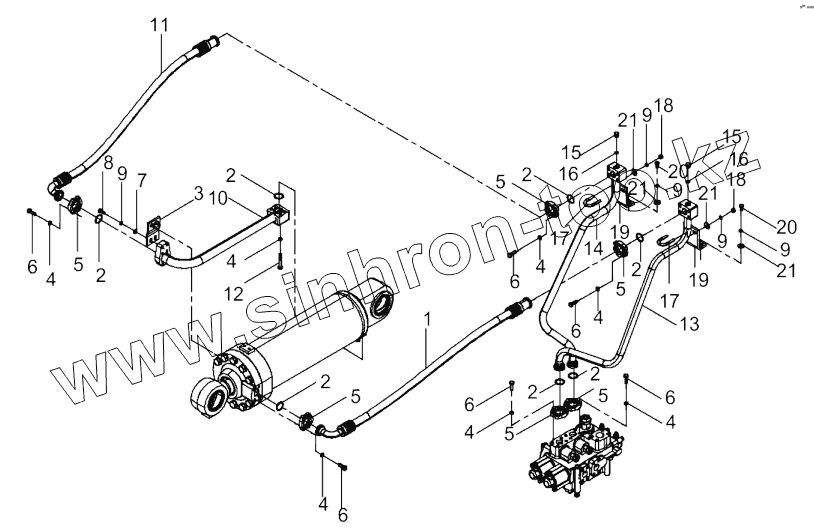 Каталог запасных частей к технике: LiuGong CLG-855N. 00C2632_002_00 TILTING CYLINDER LINES