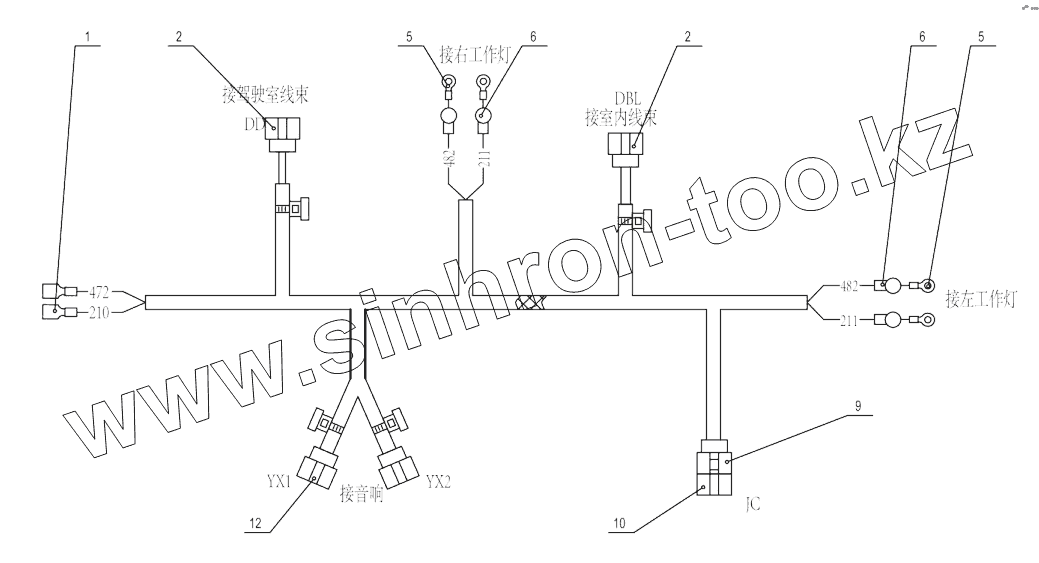 Каталог запасных частей к технике: LiuGong CLG-855N. 08C7174_000_00 WORK LIGHT HARNESS