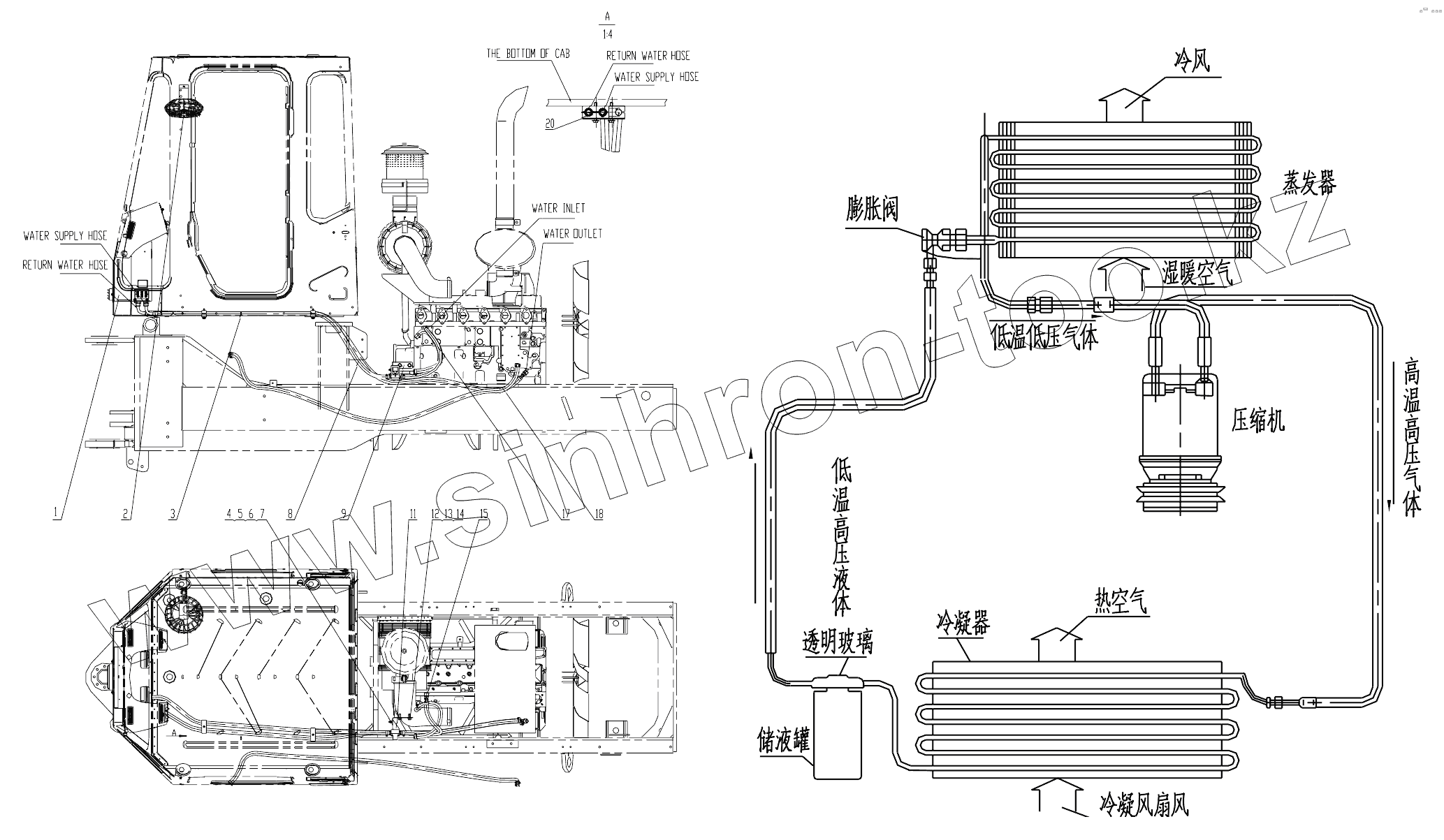 Каталог запасных частей к технике: LiuGong CLG-855N. 23Y0046_002_00 HEATING SYSTEM