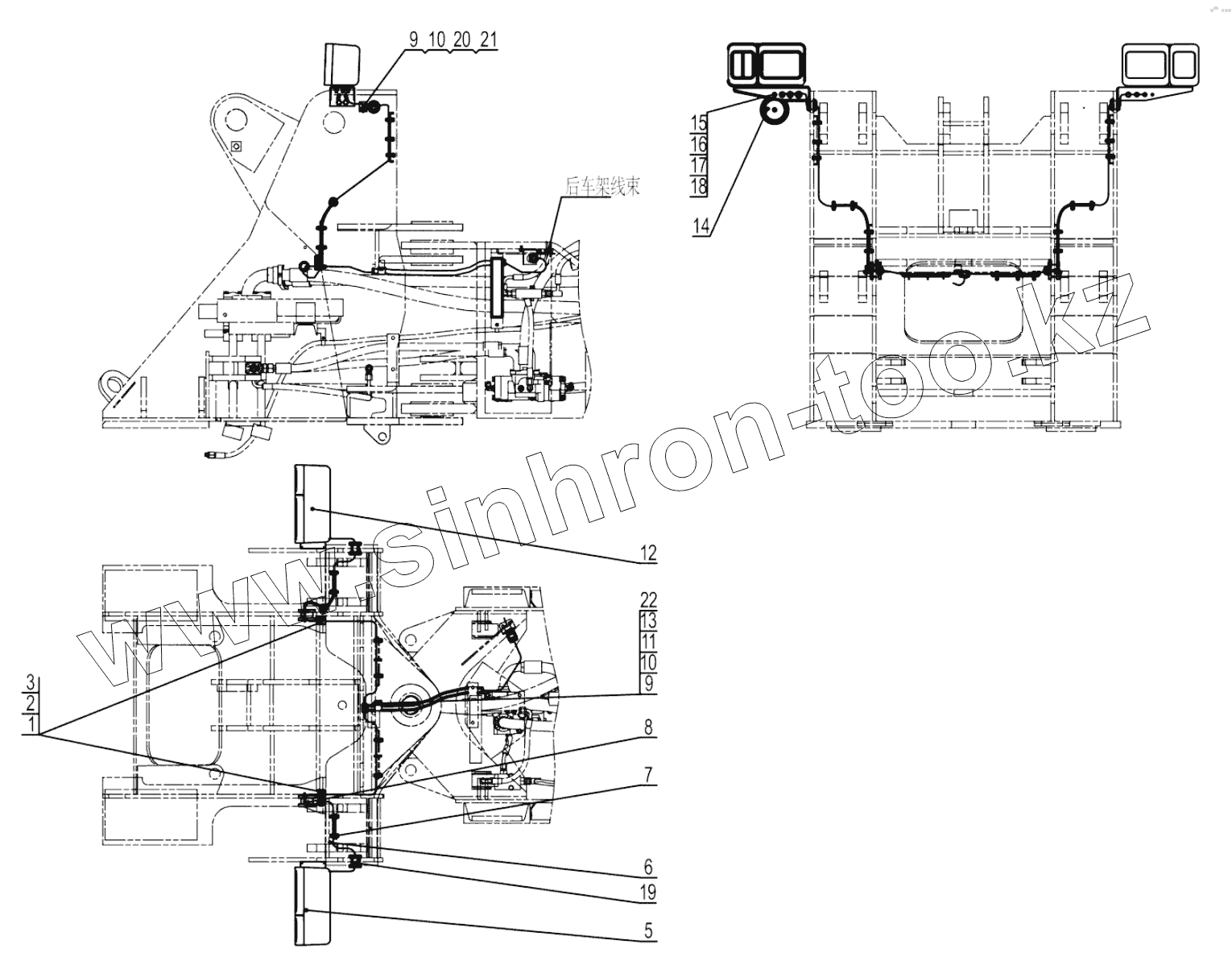 Каталог запасных частей к технике: LiuGong CLG-855N. 46C5864_005_00 FRONT FRAME WIRING