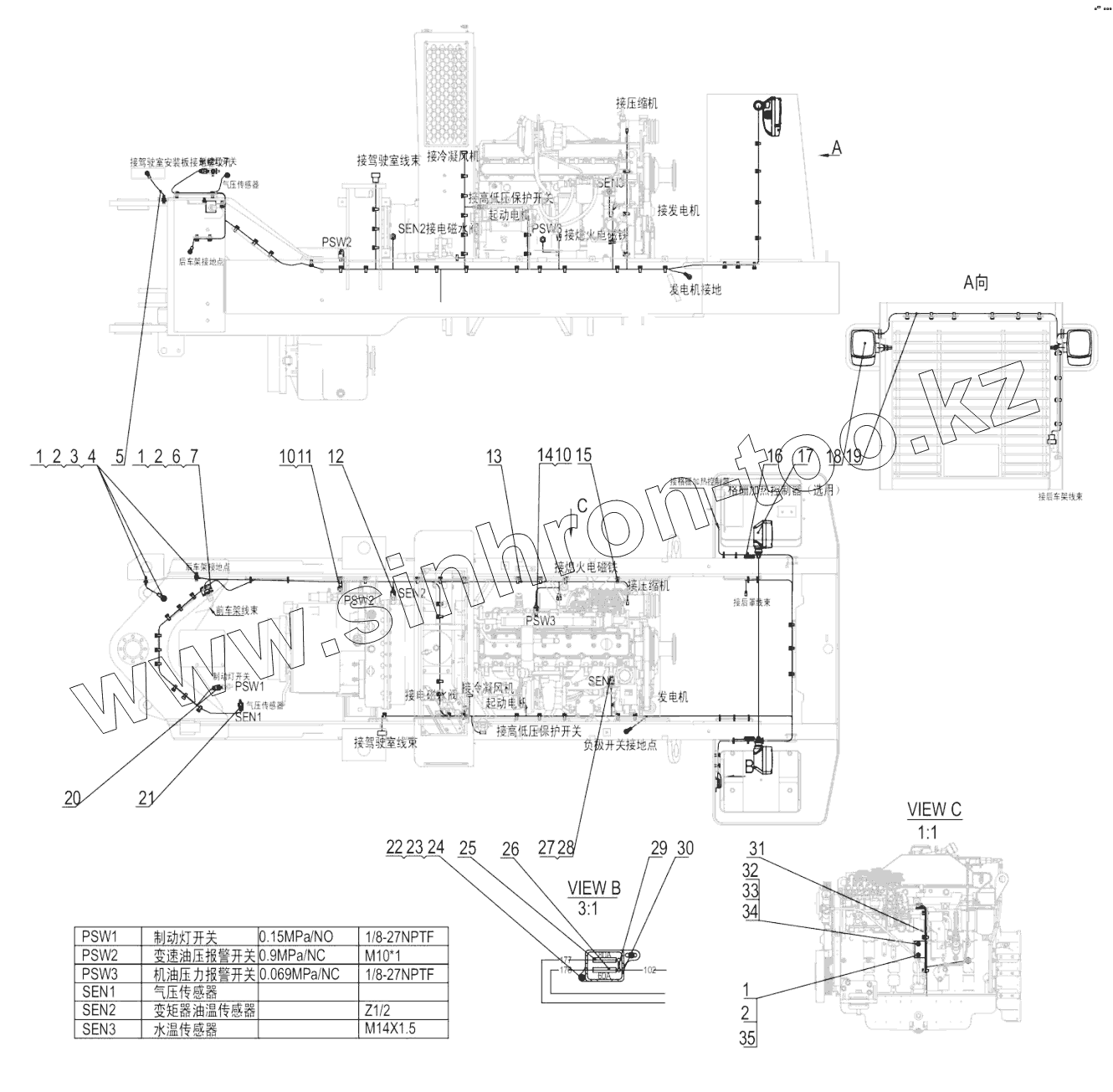 Каталог запасных частей к технике: LiuGong CLG-855N. 49C0041_000_00 REAR FRAME WIRING