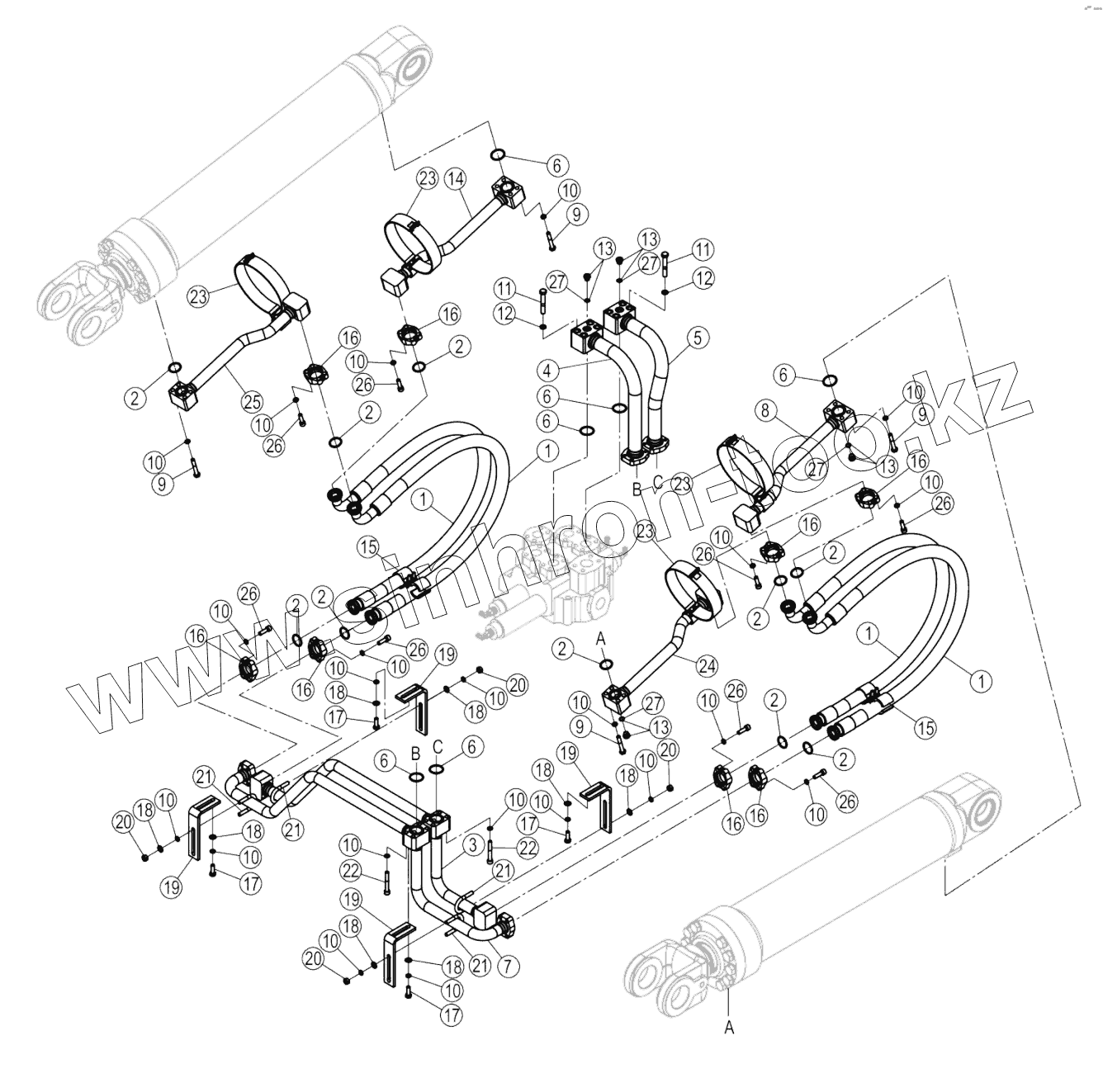Каталог запасных частей к технике: LiuGong CLG-856H. 00C2722-001-00 BOOM CYLINDER LINES
