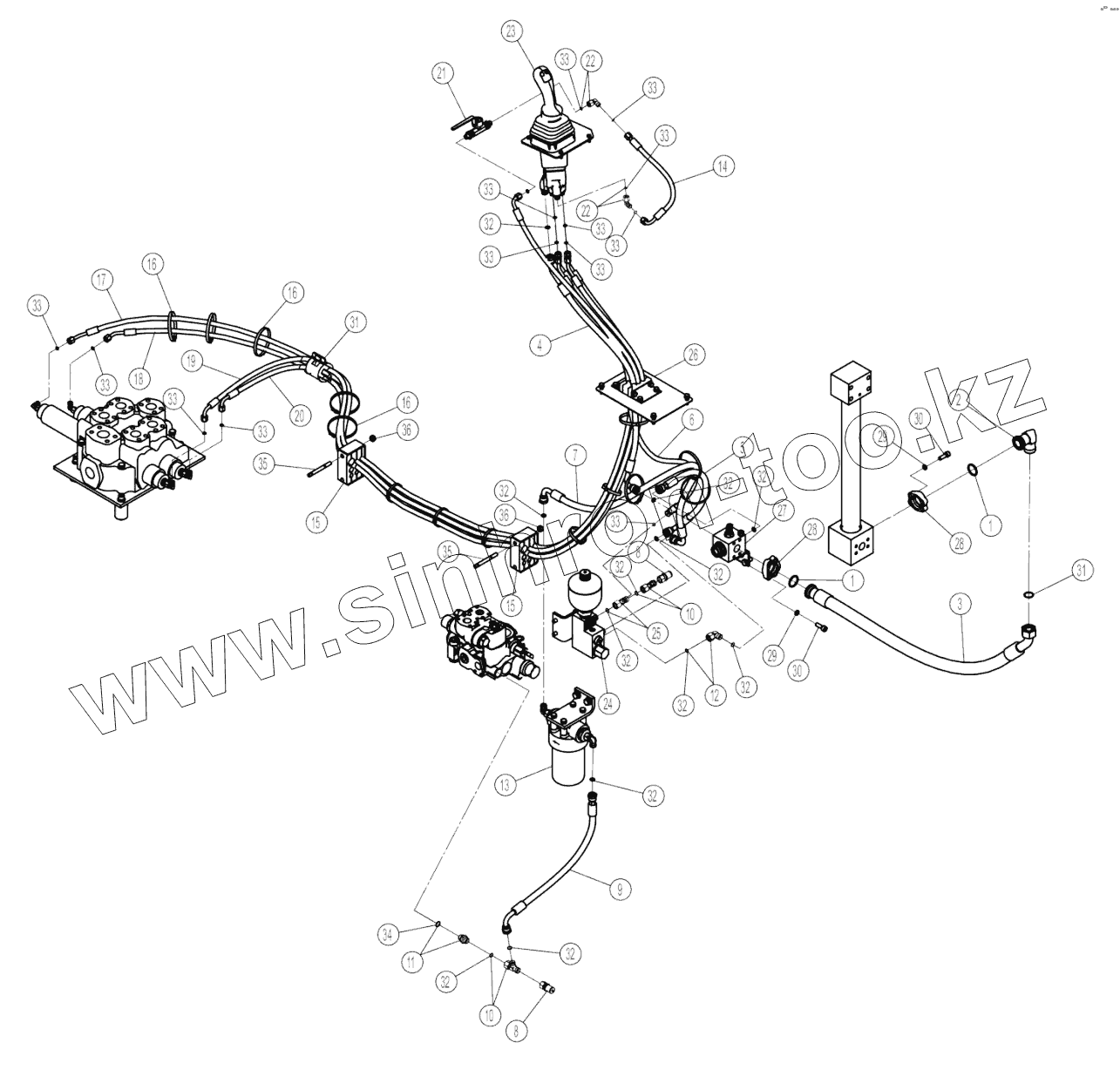 Каталог запасных частей к технике: LiuGong CLG-856H. 00C3645-001-00 PILOT VALVE and LINES