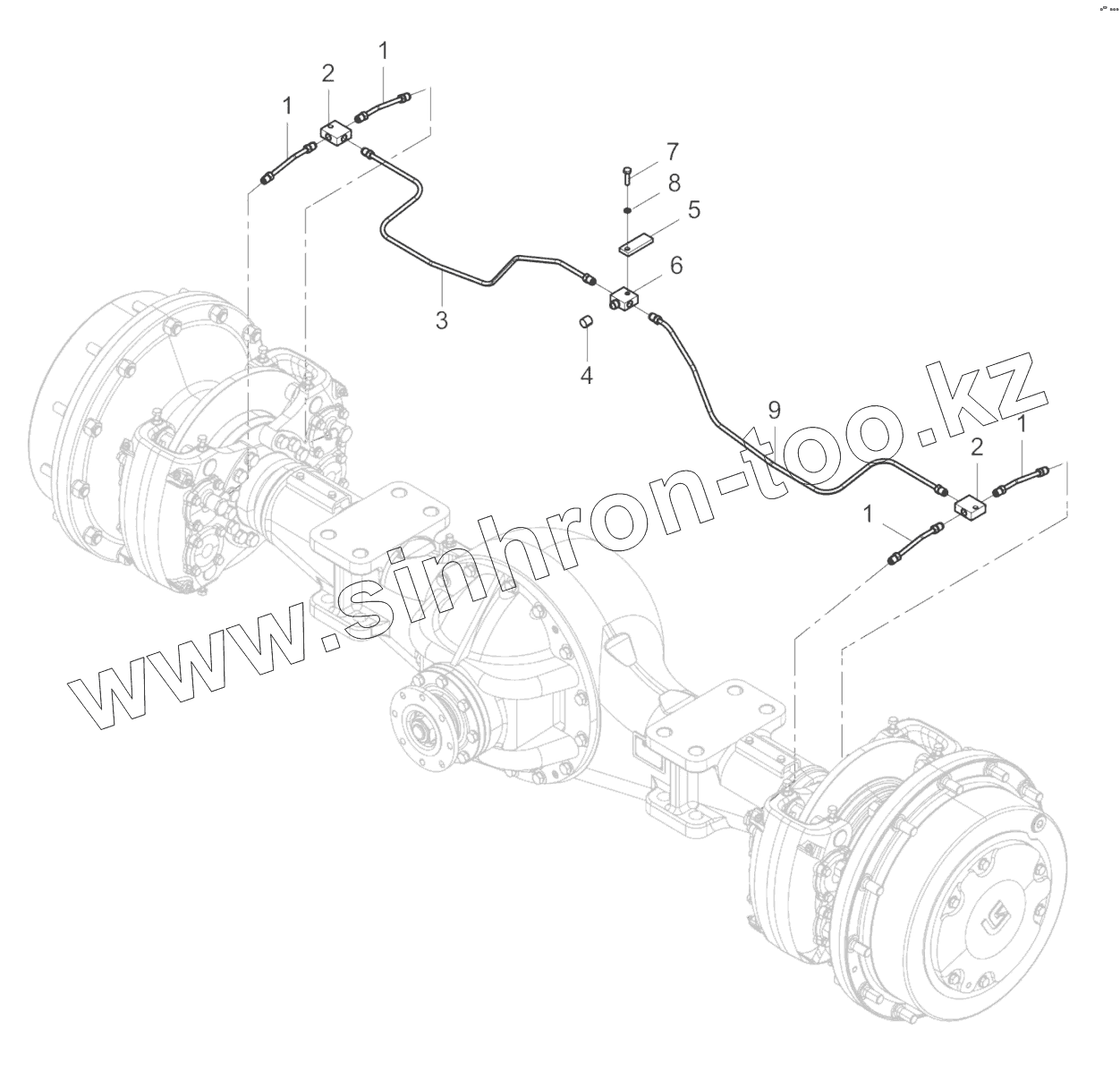 Каталог запасных частей к технике: LiuGong CLG-856H. 00C3680-000-00 FRONT AXLE BRAKE LINES