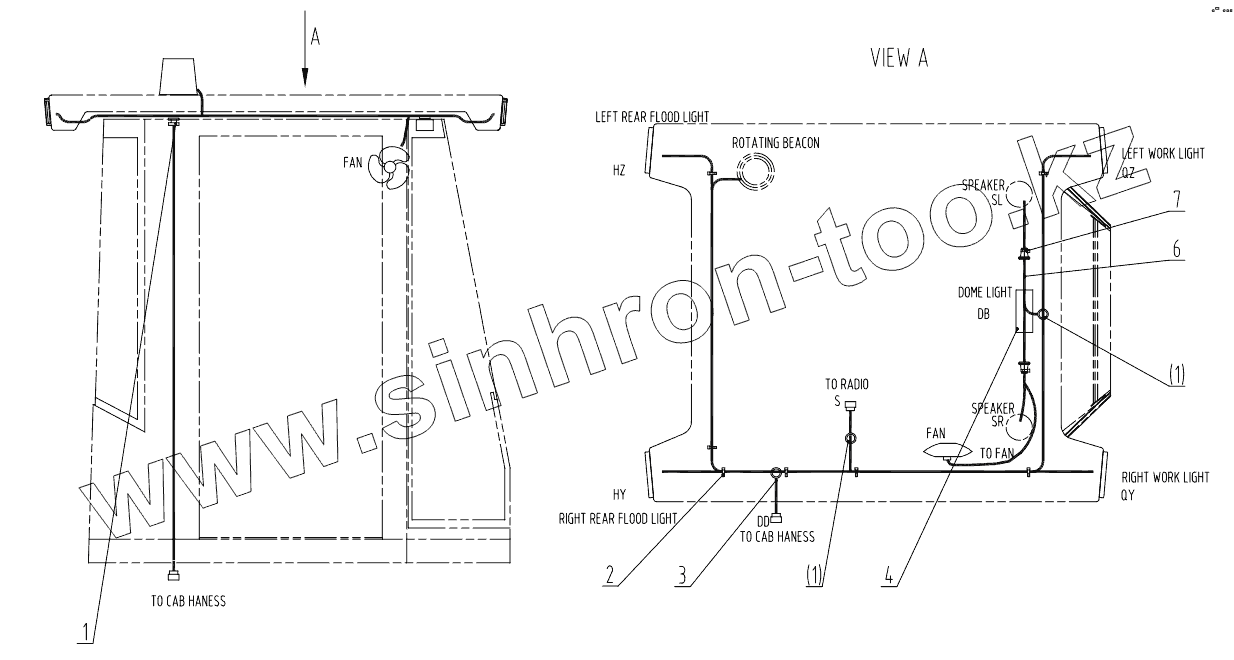 Каталог запасных частей к технике: LiuGong CLG-856I. 46C1742 002 WORK LIGHT WIRING