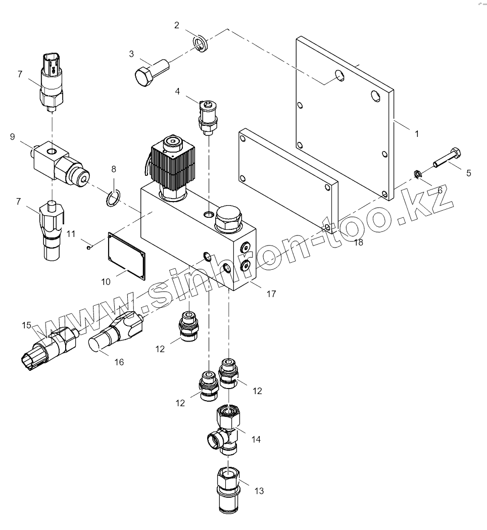 Каталог запасных частей к технике: LiuGong CLG-877. 45C0333_003_00 BRAKE VALVE AS