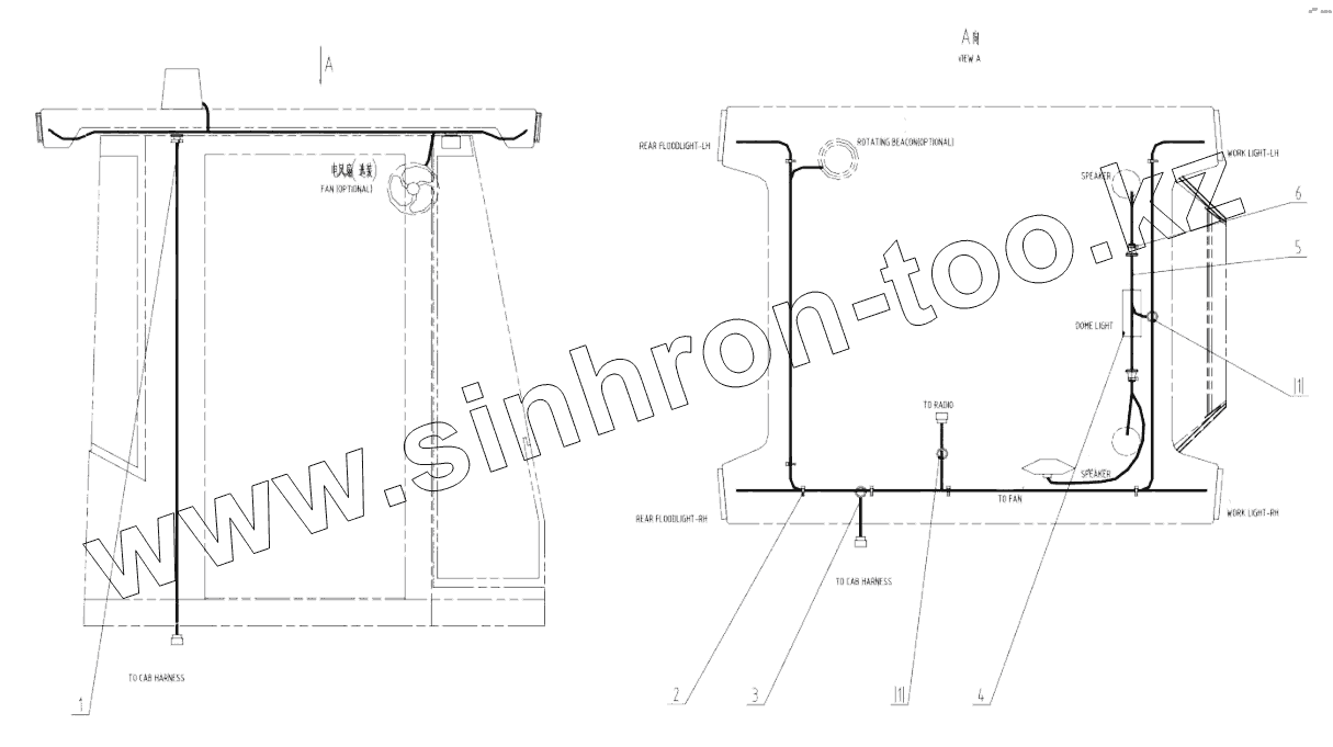 Каталог запасных частей к технике: LiuGong CLG-877. 46C3483_000_00 WORK LIGHT WIRING