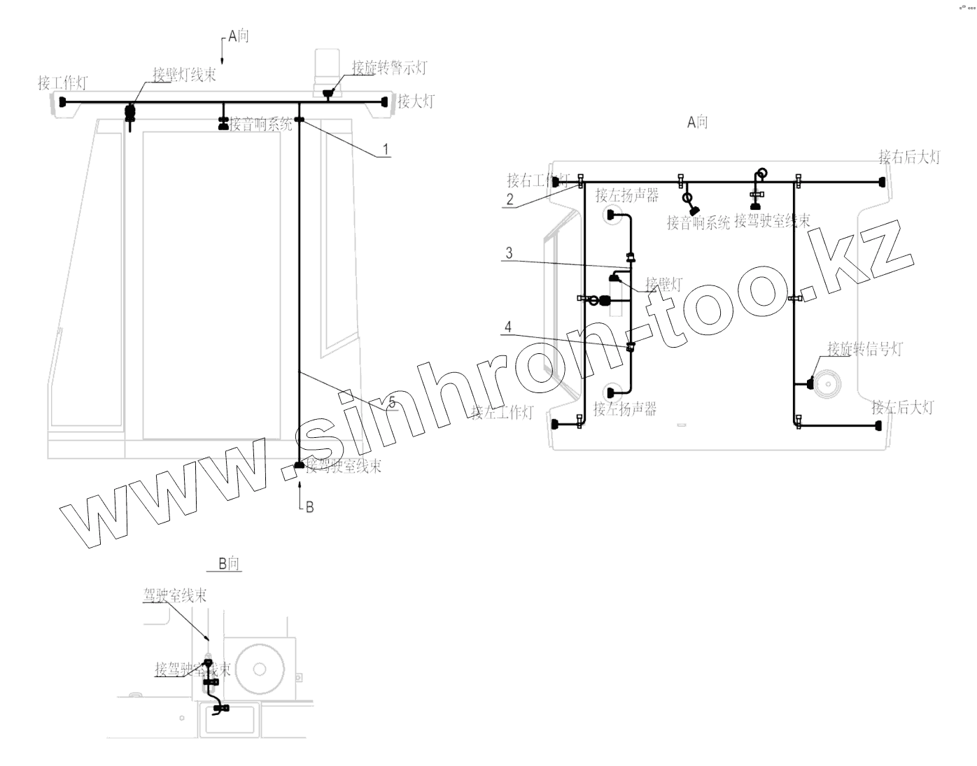 Каталог запасных частей к технике: LiuGong CLG-877. 46C9821_000_00 WORK LIGHT WIRING