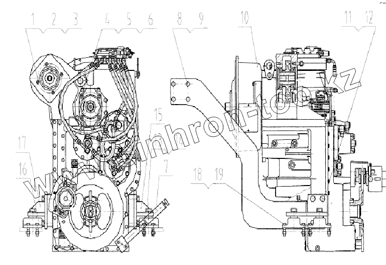 Каталог запасных частей к технике: LiuGong CLG-888. 04Е0011 Система трансмиссии и гидротрансформатора
