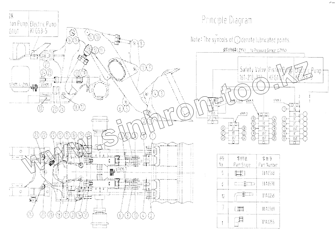 Каталог запасных частей к технике: LiuGong CLG-888. 25Е0005 Схема централизованной смазки