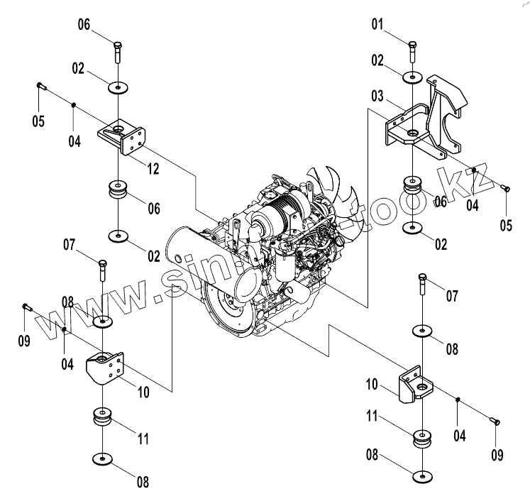 Каталог запасных частей к технике: LiuGong CLG-904С. ENGINE INSTALLATION