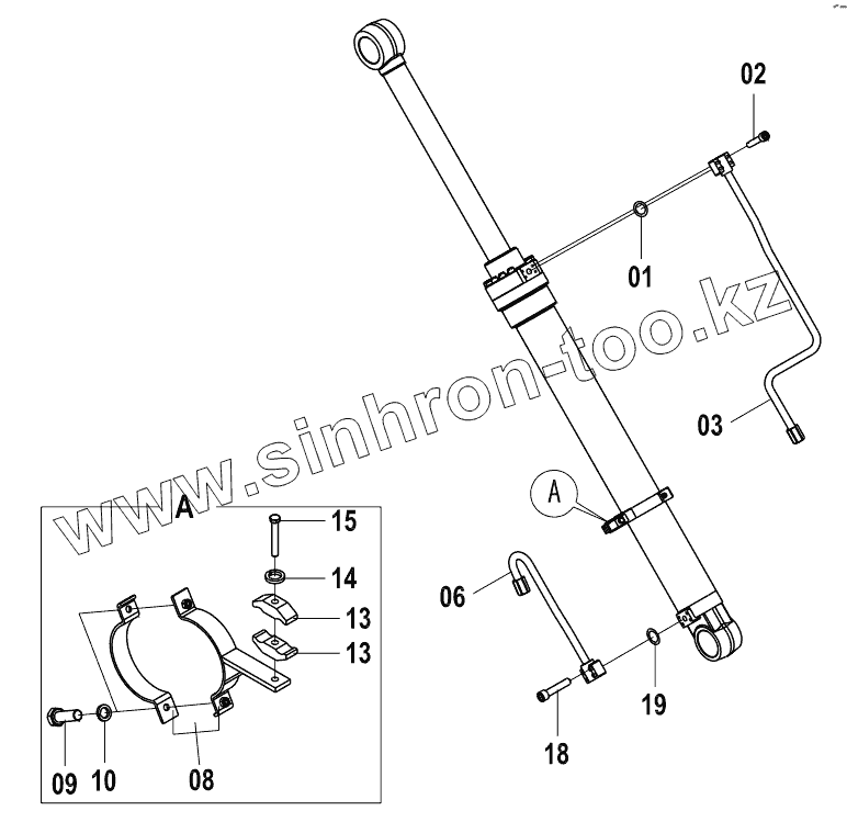 Каталог запасных частей к технике: LiuGong CLG-915D. 10C1847 BOOM CYLINDER-LH (A)