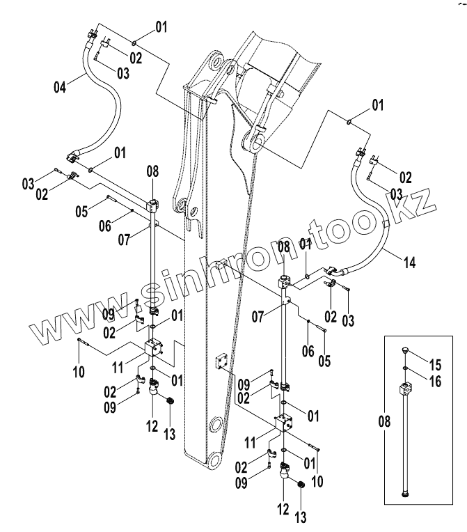 Каталог запасных частей к технике: LiuGong CLG-915D. 11Y0007 ATTACHMENT WORK LINES (A)
