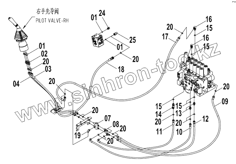 Каталог запасных частей к технике: LiuGong CLG-915D. 12Е0278-1 PILOT HYDRAULIC SYSTEM (D)
