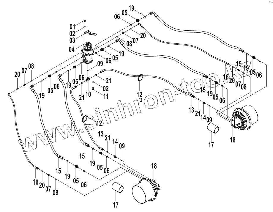 Каталог запасных частей к технике: LiuGong CLG-915D. 13E0076 001 TRAVEL HYDRAULIC SYSTEM