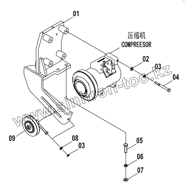 Каталог запасных частей к технике: LiuGong CLG-915D. 46C5028 000 COMPRESSOR BRACKET AS