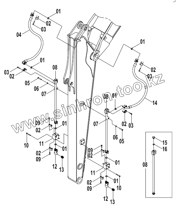 Каталог запасных частей к технике: LiuGong CLG-915D. 11E0604 ATTACHMENT WORK LINES (A)