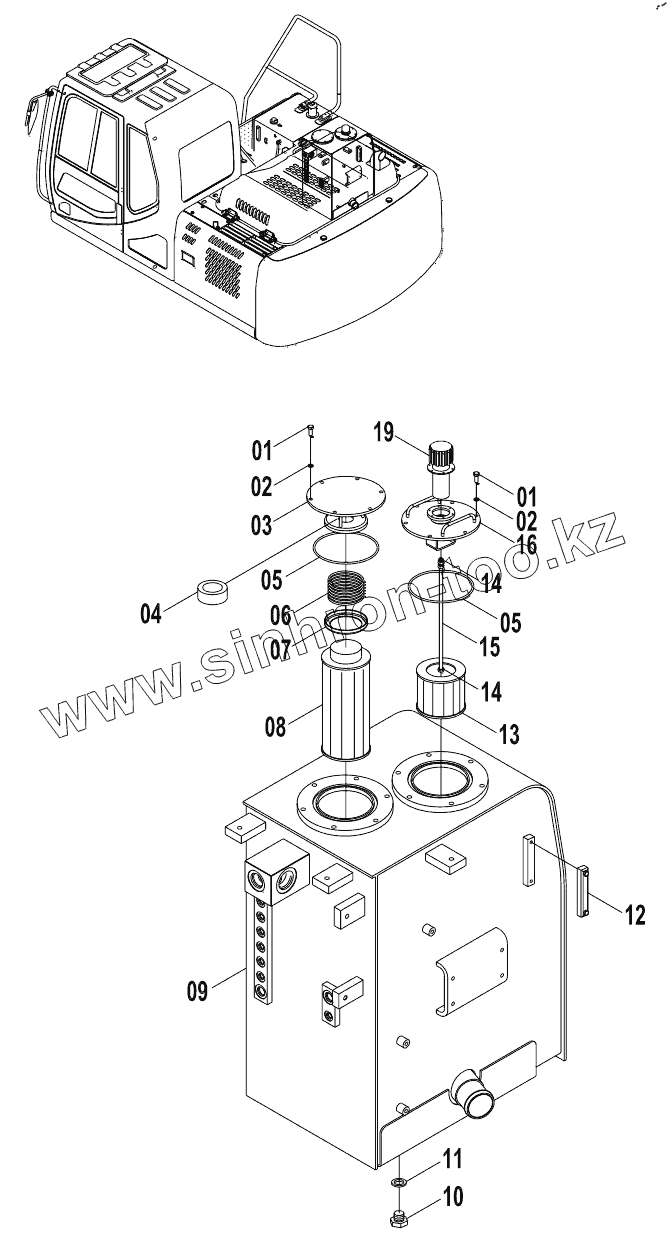 Каталог запасных частей к технике: LiuGong CLG-915D. 21C0524 002 HYDRAULIC OIL TANK