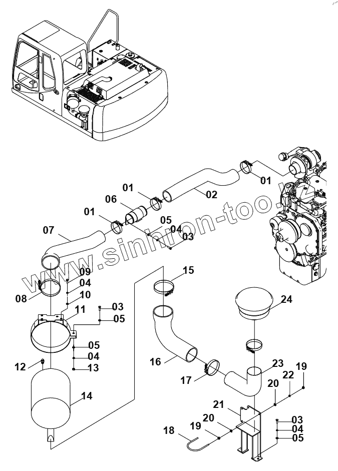 Каталог запасных частей к технике: LiuGong CLG-915D. 40C2106 INTAKE AND EXHAUST SYSTEM (A)