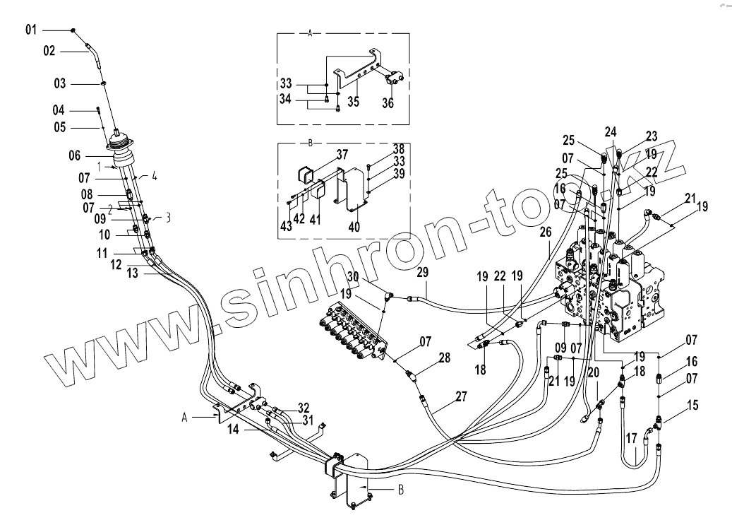 Каталог запасных частей к технике: LiuGong CLG-920E. 12E0255 (B) UPPER STRUCTURE PILOT CIRCUIT (RH)