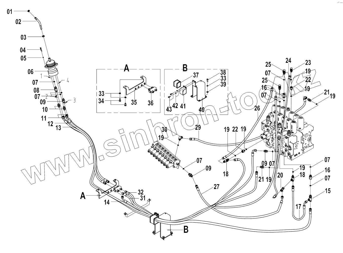 Каталог запасных частей к технике: LiuGong CLG-920E. 12Y0020 (B) UPPER STRUCTURE PILOT CIRCUIT (RH)