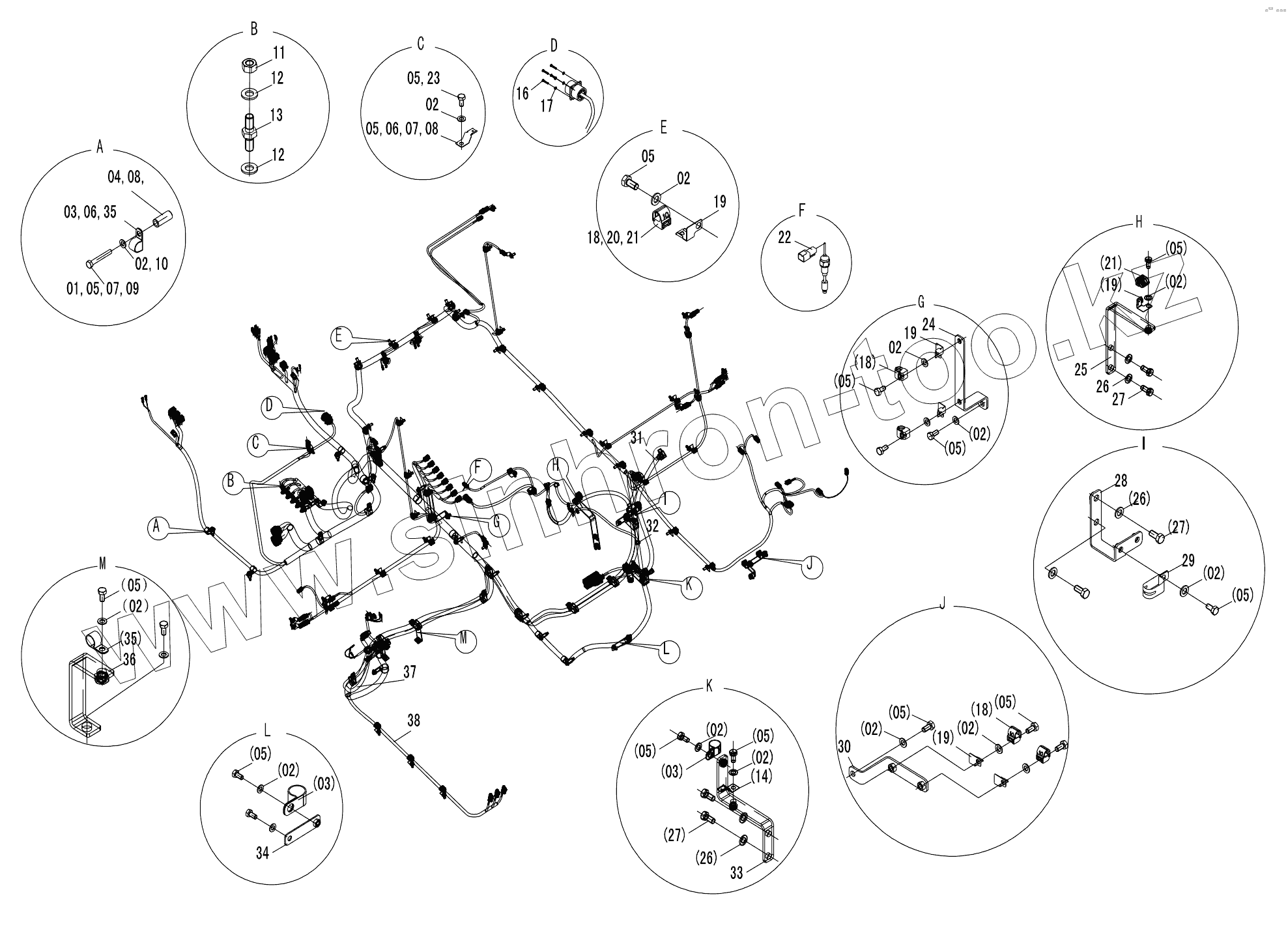 Каталог запасных частей к технике: LiuGong CLG-920E. 46C9369 (G) FRAME WIRING AS