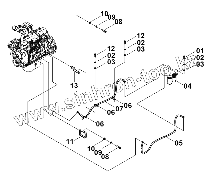 Каталог запасных частей к технике: LiuGong CLG-922LC. 00E0537(I) FUEL PIPE 1