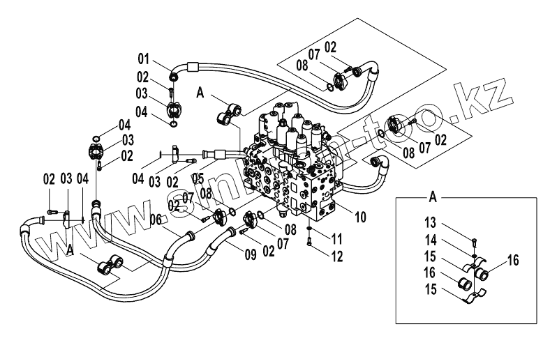 Каталог запасных частей к технике: LiuGong CLG-922LC. 15E0494(E) MAIN HYDRAULIC PIPING (3)