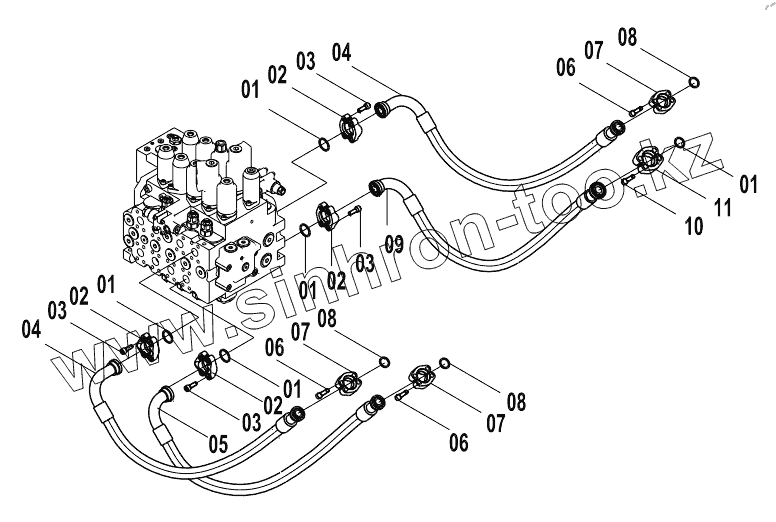 Каталог запасных частей к технике: LiuGong CLG-922LC. 15E0494(G) MAIN HYDRAULIC PIPING (5)