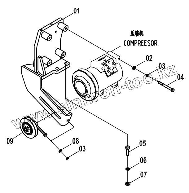 Каталог запасных частей к технике: LiuGong CLG-922LC. 46C3351 002 COMPRESSOR BRACKET AS